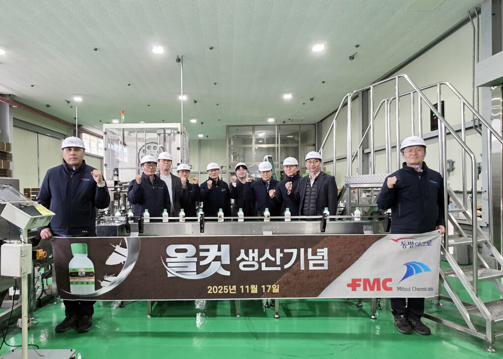 ㈜동방아그로(대표이사 염병만·염병진)는 오는 2026년 출시 예정인 신제품 ‘올컷’ 유현탁제의 첫 생산을 부여공장에서 성공적으로 마쳤다고 11월 17일 밝혔다. 이번 생산 기념식에는 동방아그로 공장·연구소·본사 PM과 원제 공급사인 FMC관계자들이 참석해 의미를 더했다. ‘올컷’은 광범위 해충에 우수한 방제력을 가진 차세대 종합살충제로, 두 원제가 최적 비율로 조합된 것이 특징이다. 사이안트라닐리프롤(FMC): 나방 및 흡즙해충에 강한 광범위 스펙트럼 에토펜프록스(Mitsui): 노린재·멸구·나방 등에 […]more